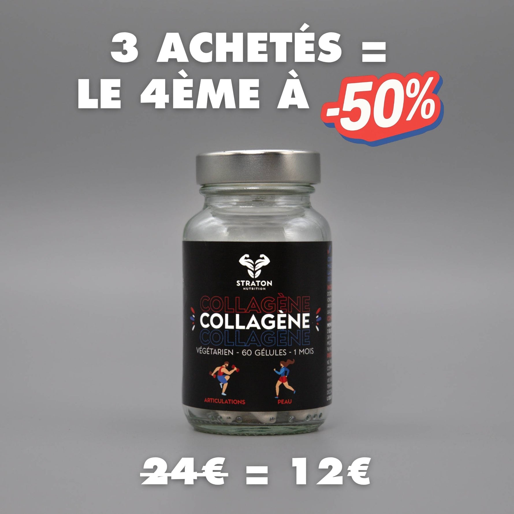 Prix unitaire parStraton Collagène réunit l’essentiel : collagène types I, V et X, élastine, acide hyaluronique, silicium et nutriments naturels issus de la membrane d’œuf. Cette composition unique soutient la solidité articulaire, la mobilité, la souplesse des tendons et la santé des tissus conjonctifs. Conçu pour les sportifs, les actifs et tous ceux qui veulent préserver leurs performances physiques et leur capital jeunesse, Straton Collagène est 100 % naturel, fabriqué en France et formulé avec des ingrédients hautement biodisponibles. Bonus : notre formule fait du bien à votre peau, vos ongles et vos cheveux pour un snatch de toute beauté !